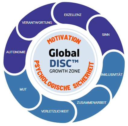 - psychologische Sicherheit (z. B. Mut, Offenheit, Zusammenarbeit, Inklusion)